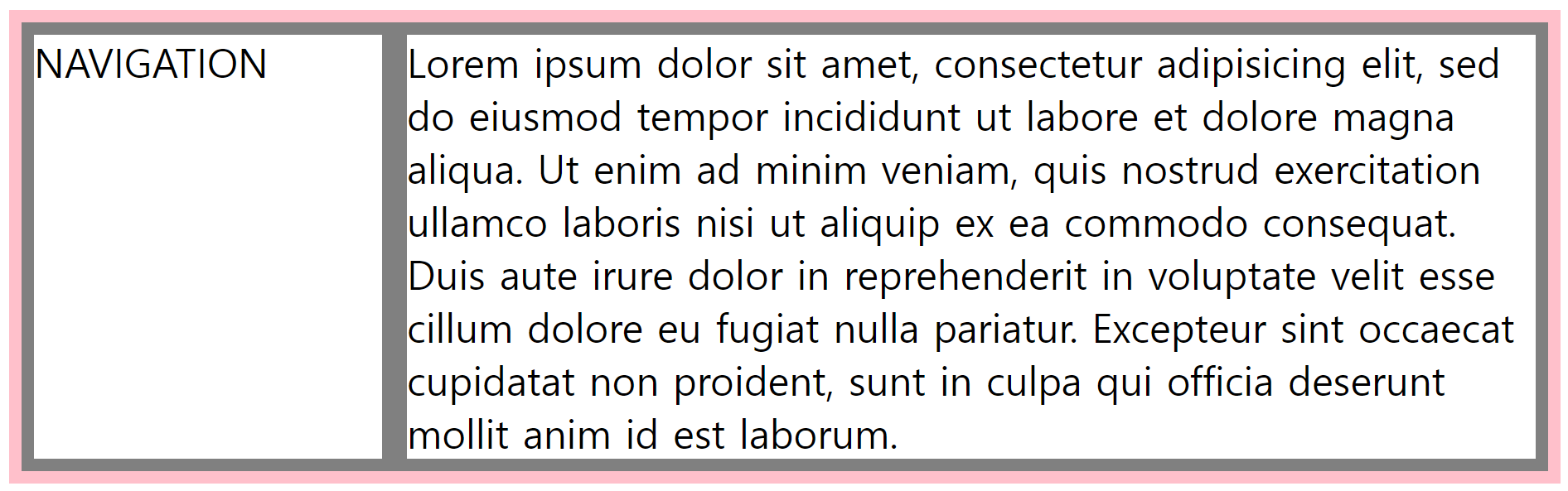 첫번째 컬럼인 NAVIGATION은 150px의 공간을 가지고