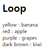 fruit라는 변수에 키값의 수만큼 반복문이 실행된다는 것이다.