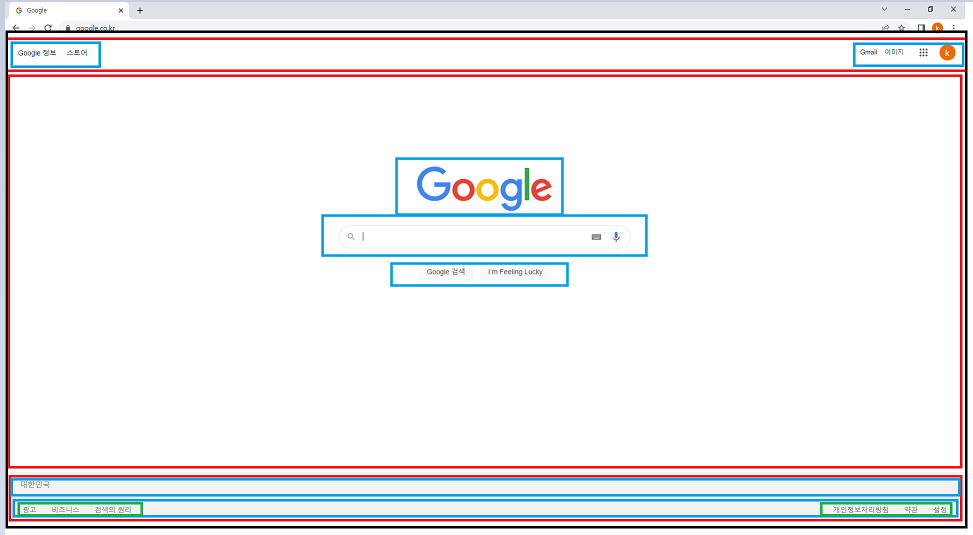 오늘 만들어 볼 것은 구글 메인 홈페이지이다.
