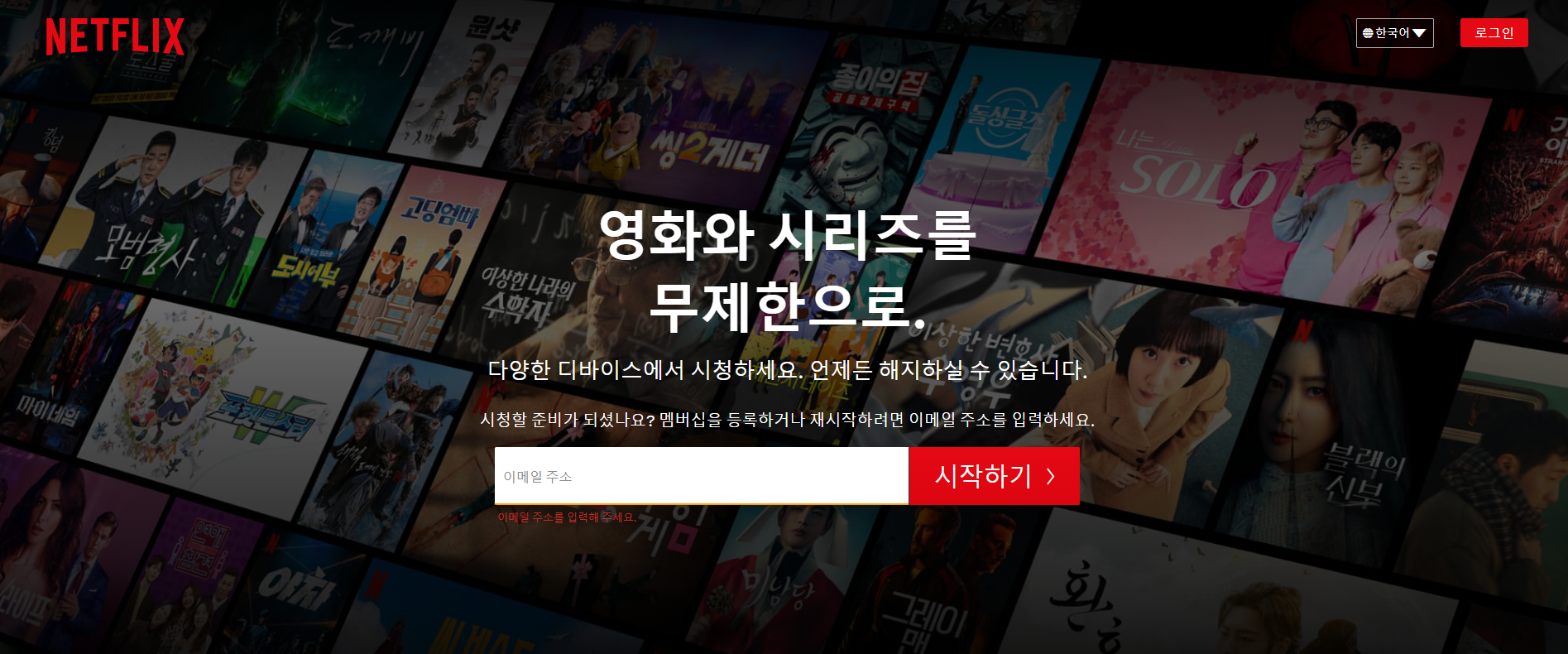 <h3>시청할 준비가 되셨나요? 멤버십을 등록하거나 재시작하려면 이메일 주소를 입력하세요.</h3>