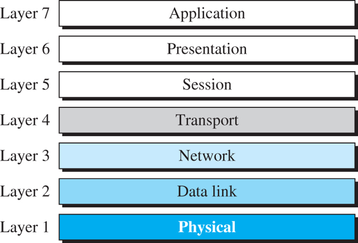 - 꼬임쌍선(twisted pair wire), 동축선(coaxial cable), 광케이블(fiber-optic cable), 레이저 또는 무선파