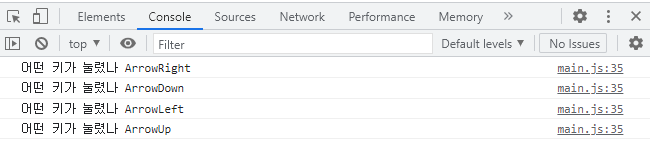 여기서 문제가 하나 생긴다. 이 상태에서 특정 방향키를 계속 누르고 있으면