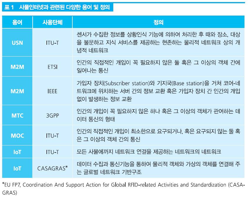 사물지능통신에 대해 다양한 정의를 내리고 있다.