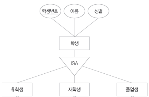 일부 개체 집합들이 맺고 있는 관계 중에는 상하 관계가 있다. 상위 개체 타입의 특성에 따라 하위 개체 타입이 결정되는 형태로 ISA 관계라고 한다.