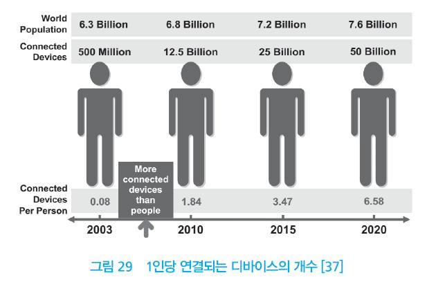 시스코의 인터넷 비즈니스 솔루션 그룹(Cisco IBSG)이 2011년에 발표한 자료에 따르면, 2020년 1인당 사용하는 디바이스의 평균 개수는 6.58대로 2010년의 1.84대에 비해 무려 3.6배나 증가할 거라고 한다.