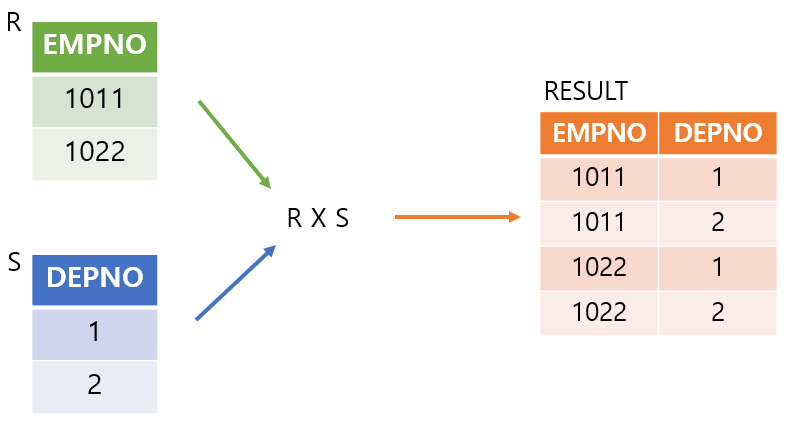 카티션 프로덕트는 두 릴레이션을 무조건 수평으로 합친 결과를 반환하기 때문에 의미가 없다.