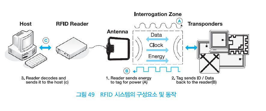 RFID 시스템은 태그, 리더, RFID 미들웨어의 세가지 요소로 구성된다.