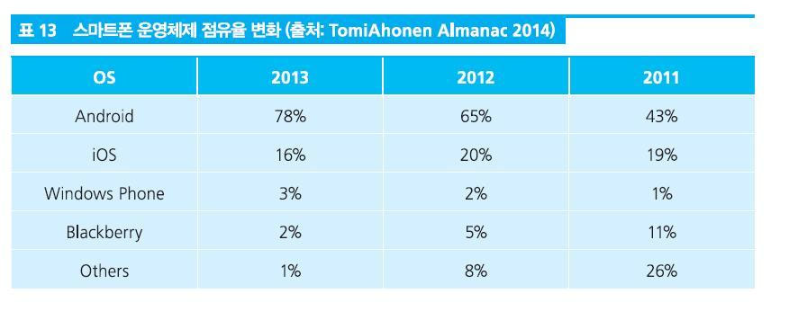 최근에 스마트 워치나 스마트 안경과 같은 웨어러블 디바이스의 보급이 확대되면서, 새로운 운영체제들이 속속 등장하고 있다. (안드로이드웨어와 타이젠)