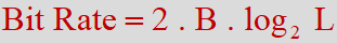 - 대역폭은 채널의 대역폭(B), L은 데이터를 나타내는데 사용한 신호 준위의 개수, 전송률은 초당 비트 수라고 할 때 비트율은