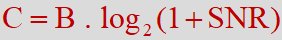 - 대역폭(B)은 채널의 대역폭, SNR은 신호에 대한 잡음 비율, 용량은 bps단위의 채널 용량(capacity)이라고 하면