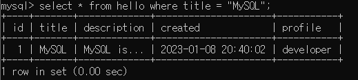 만약 title이 MySQL인 칼럼만 보고 싶다면