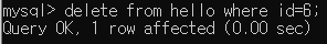 만약 id가 6인 칼럼을 삭제하고 싶다면 아래와 같이 작성하면 된다.