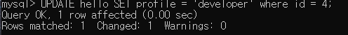 테이블을 보면 id 4의 profile이 developer가 아닌 developor로 되었는 것을 알 수 있다.