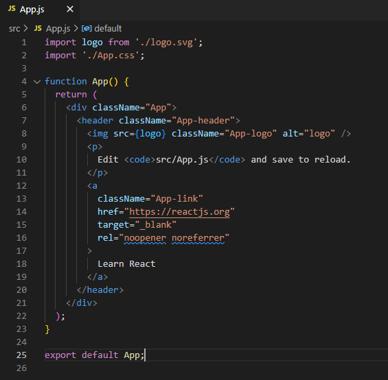 그래서 현재 디렉토리의 App.js를 가보면 아래와 같이 생긴 것을 볼 수 있다.