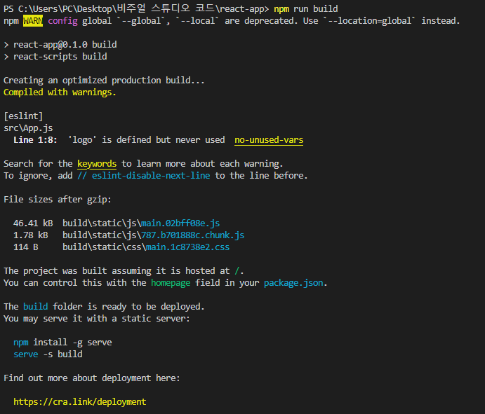 npx serve -s build를 작성하면 아래와 같이 뜨고 저 링크로 가면