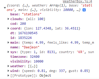 그 후 WeatherBox에서 console로 props가 잘 전달이 되었는지 확인을 해주자.