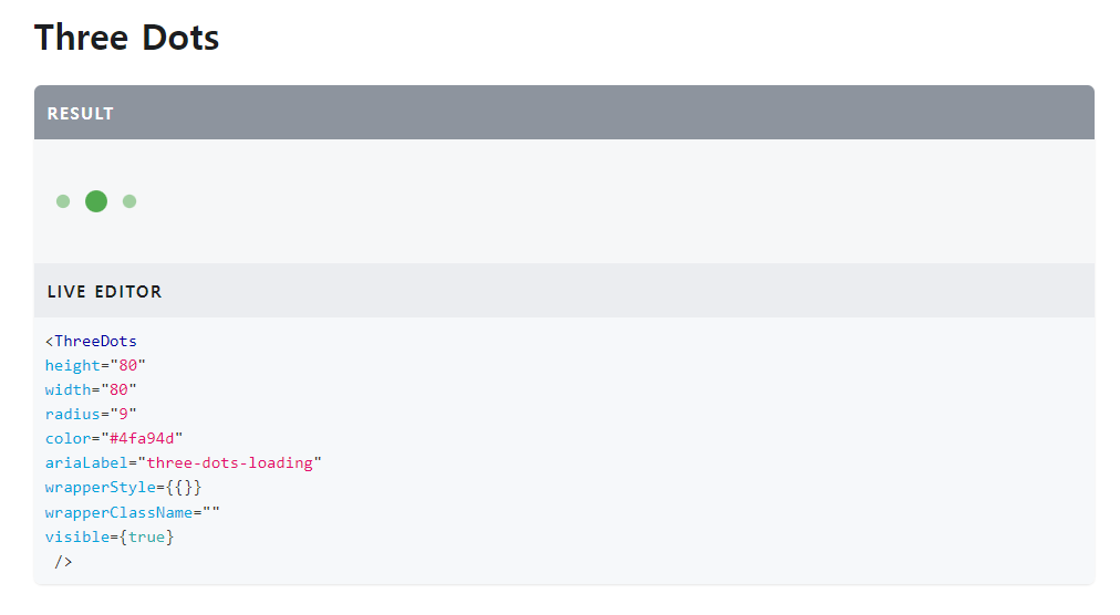 react-spinner-loader provides simple React.js spinner component which can be implemented for async wait operation before data load to the view.. Latest version: 5.3.4, last published: 6 months ago. Start using react-loader-spinner in your project by runnin