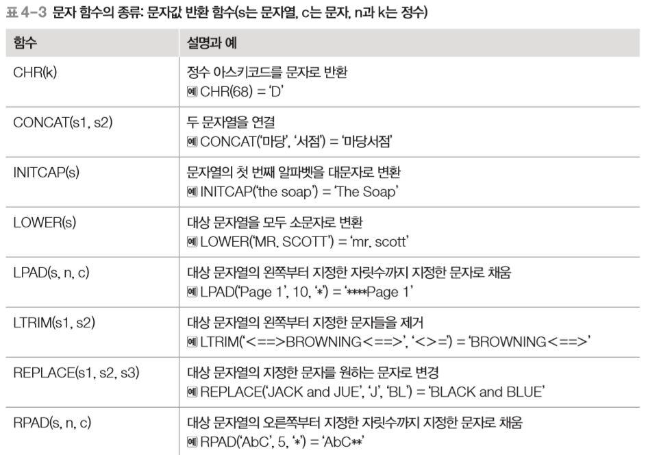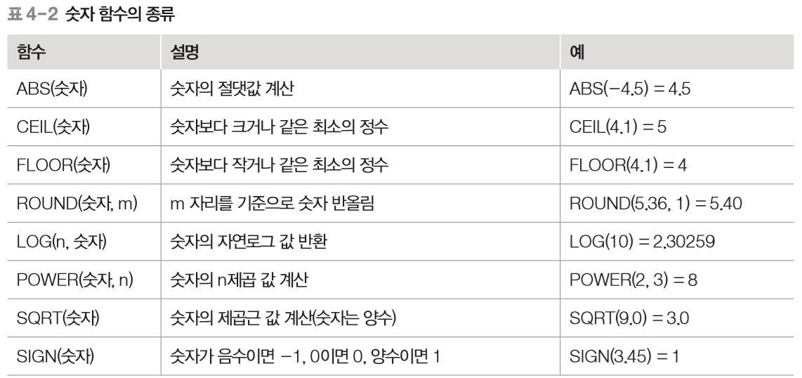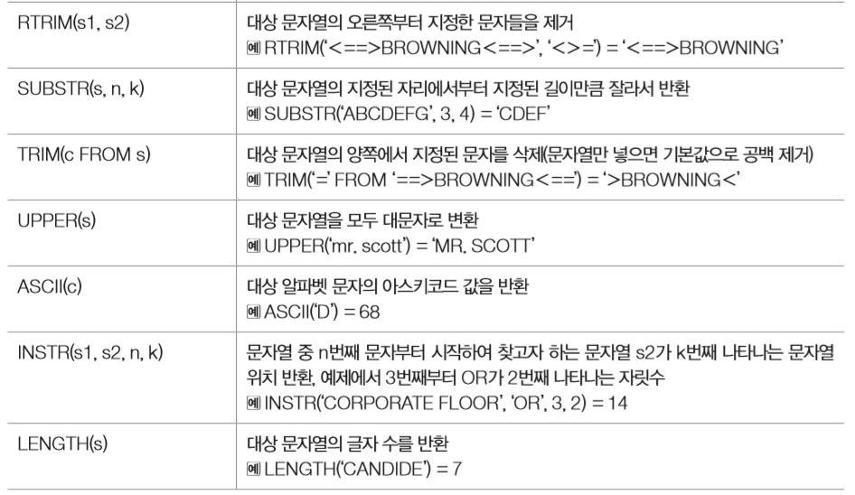SQL의 함수는 DBMS가 제공하는 내장함수와