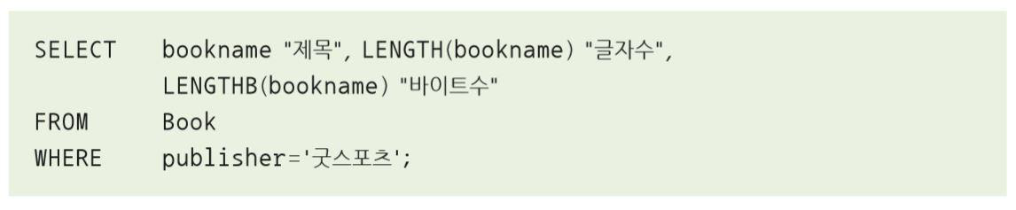 예제) 굿스포츠에서 출판한 도서의 제목과 제목의 글자 수를 확인하시오.