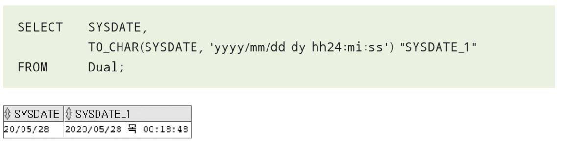 TO_CHAR: 날짜형을 문자형으로 변환하는 함수