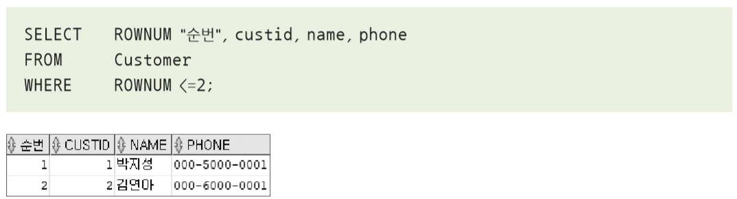 예제) 고객 목록에서 고객번호, 이름, 전화번호를 앞의 두명만 보이시오.