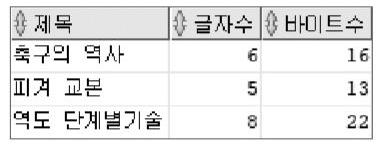 예제) 굿스포츠에서 출판한 도서의 제목과 제목의 글자 수를 확인하시오.