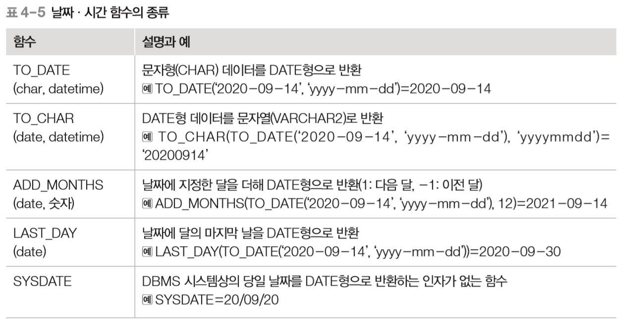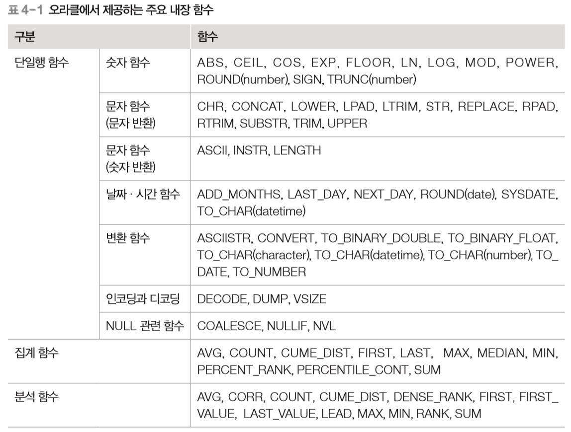 SQL의 함수는 DBMS가 제공하는 내장함수와