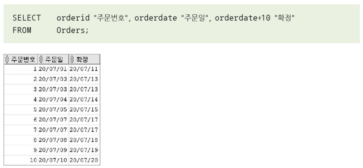 예제) 마당서점은 주문일로부터 10일 후 매출을 확정한다. 각 주문의 확정일자를 구하시오.