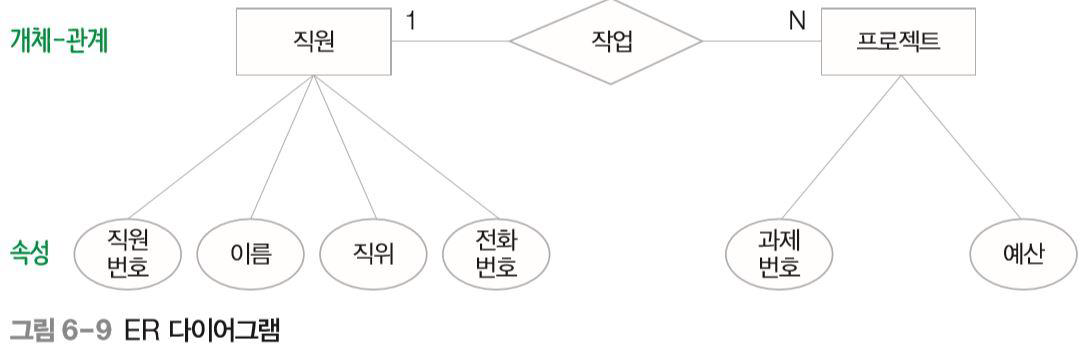ER 다이어그램: ER 모델은 개체와 개체 간의 관계를 표준화된 그림으로 나타냄.