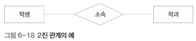 2진 관계: 두 개의 개체가 관계를 맺는 경우