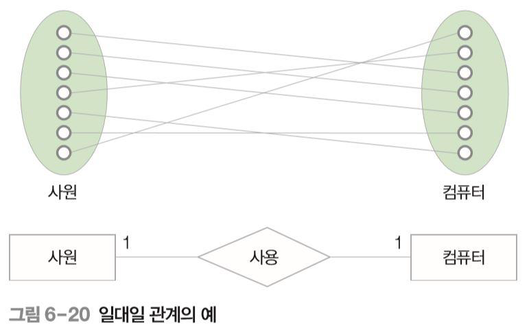 좌측 개체 타입에 포함된 개체가 우측 개체 타입에 포함된 개체와 일대일로 대응하는 관계