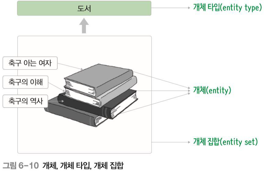 비슷한 속성의 개체 타입을 구성하며, 개체 집합으로 묶임.