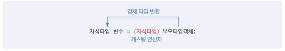 자식 객체가 부모 타입으로 자동 변환된 후 다시 자식 타입으로 변환할 때 강제 타입 변환을 사용할 수 있다.