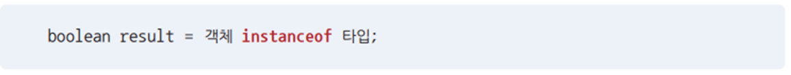 *자바12부터는 instanceof 연산의 결과가 true일 경우, 우측 타입 변수를 사용할 수 있기 때문에