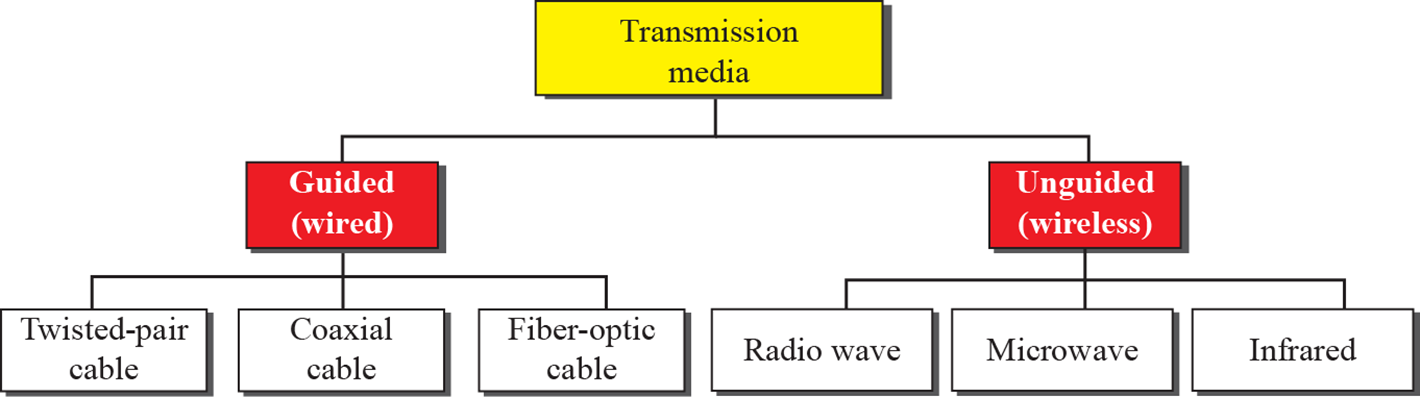 두 가지 형태로 분류: 유도 매체, 비유도 매체