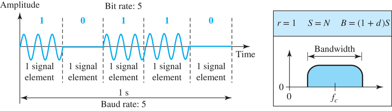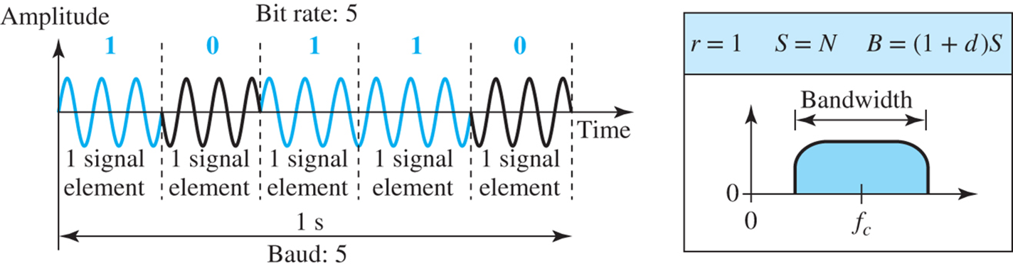 - ASK의 대역폭: B(대역폭) = (1 + d (0 과 1 사이의 값)) × S(신호율: signal rate)