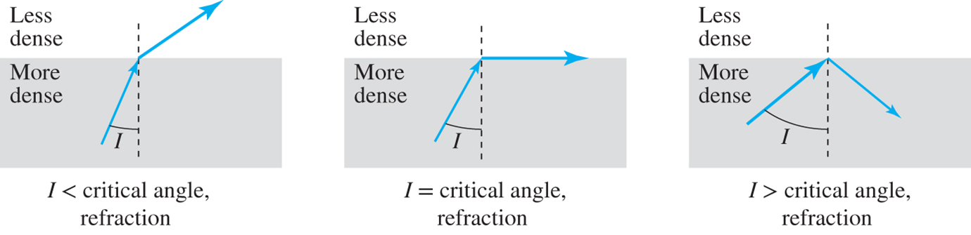 굴절(refract) : 입사각이 임계각 보다 작을 때