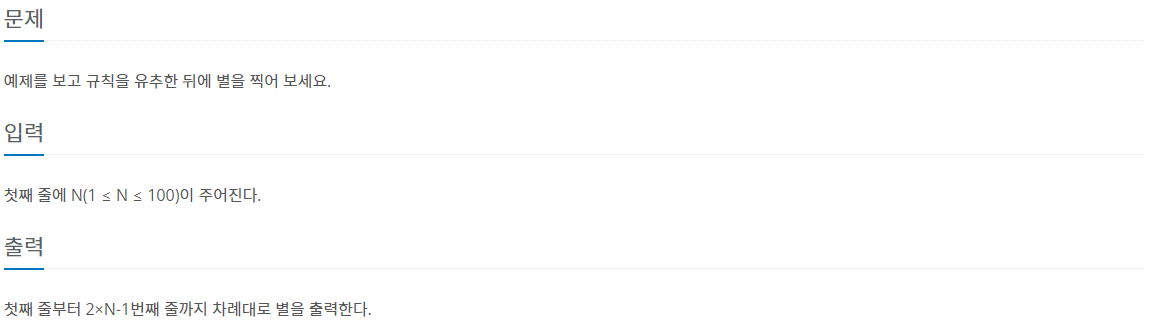 첫째 줄부터 2×N-1번째 줄까지 차례대로 별을 출력한다.