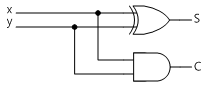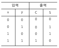 - 일반적으로 두 입력을 x, y로 표현하고 출력을 C(캐리), S(합)로 표현한다.