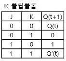 - J = K = 1일 때 클럭 펄스는 플립플롭의 출력을 보수로 만든다. 즉, Q(t+1) = Q'(t)이 된다.