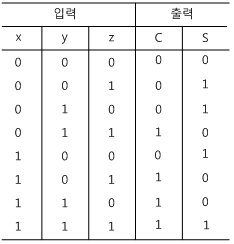 - 3개의 입력(x, y, z)과 2개의 출력(C, S)으로 구성된다.