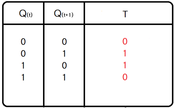 - T = 0인 경우 상태의 변화가 없고, T = 1인 경우 상태는 보수로 된다.