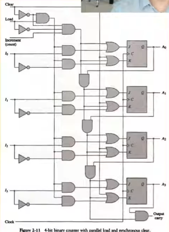- 카운터는 이진 숫자가 하나 증가하면 각 비트는 0>1(1>0) 또는 0>0(1>1)로 된다. 이런 상태를 유발할 수 있는 플립플롭은 T나 JK 플립플롭이며 이런 특성이 이진 카운터에 이용된다.