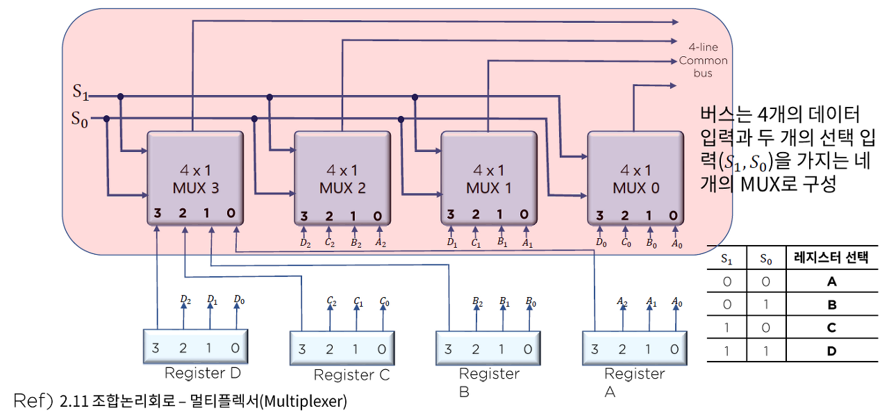 *각 레지스터에서 동일한 위치의 비트들은 모두 하나의 멀티플렉서에 연결되어 하나의 버스 라인을 형성하게 된다.