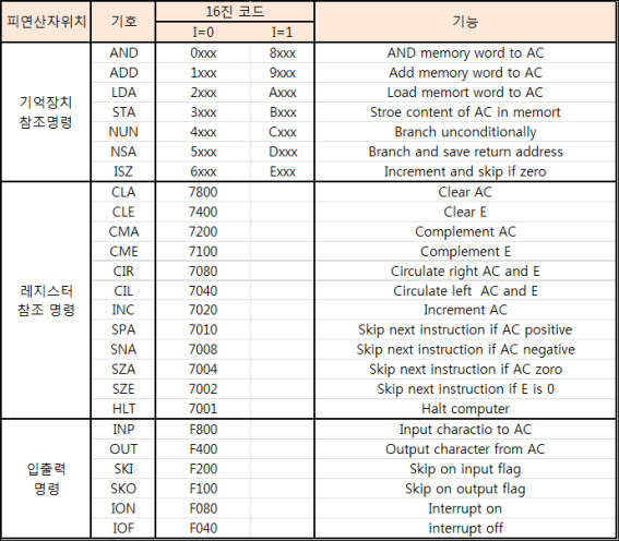 *여기서 I = 0이나 1로 Mode를 나타내며 Opcode는 명령어 종류를, 그리고 Address는 Operand(Data, 피연산자)의 저장 위치를 가리킨다.