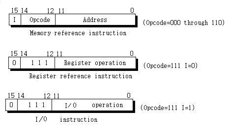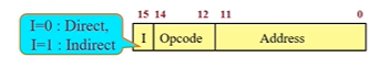 *메모리 참조 명령: 12비트를 주소지정에 사용하고, 주소 모드 I를 위해 맨 왼쪽의 한 비트를 사용한다.