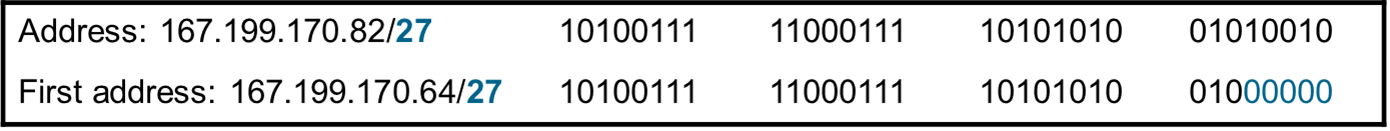 첫 번째 주소는 처음 27개의 비트를 유지하고 나머지 비트를 0으로 변경