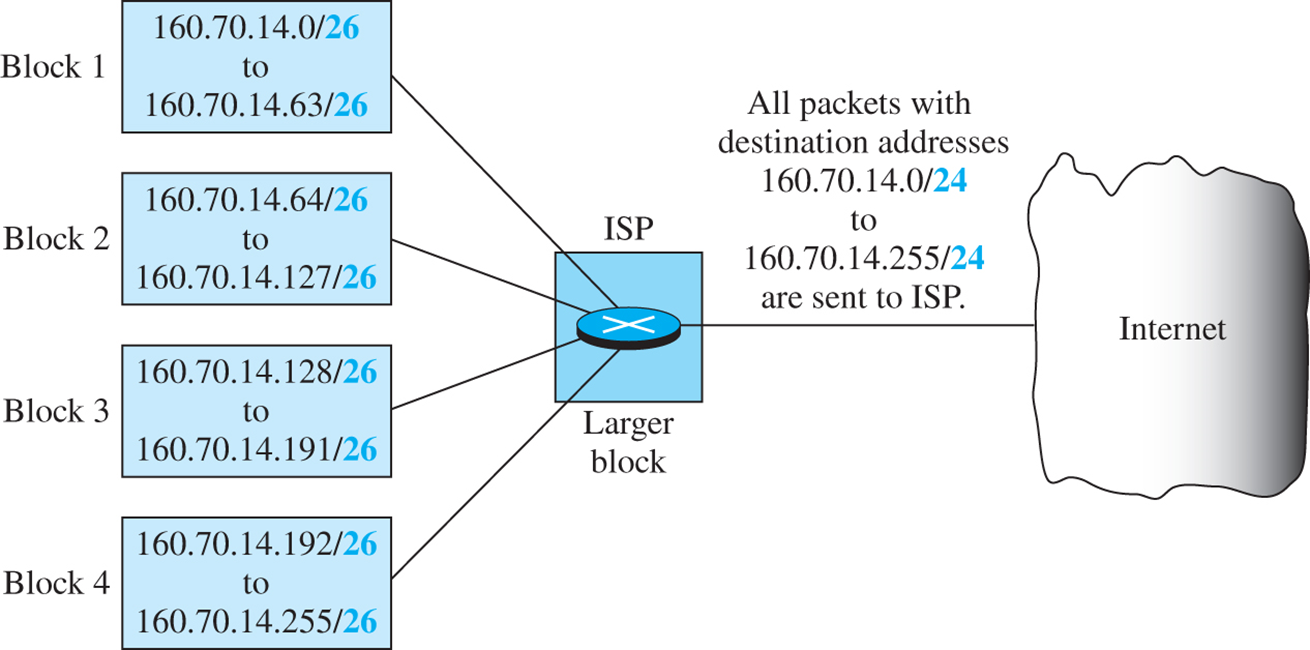 2) 이 큰 블록을 향해 오는 모든 패킷은 이 ISP로 전달된다. ISP는 패킷을 적합한 기관으로 전달해야 한다.