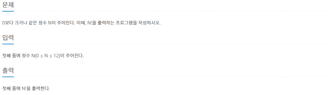 1. 팩토리얼을 구하기 위해 N을 입력받는다.