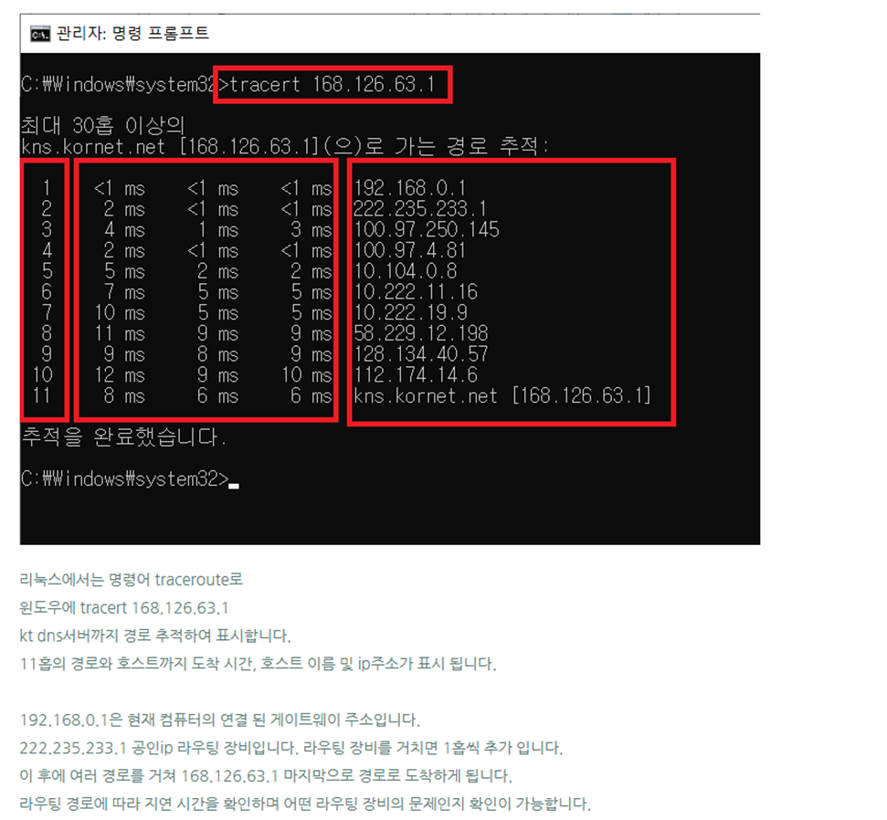 2) 경로를 지나는 동안 방문하게 되는 모든 라우터의 IP 주소를 찾을 수 있다.